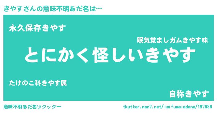 | 胡散臭い通販商品みたいなあだ名 | 『信頼と実績のサプリメント…その名も「きやす」』 |