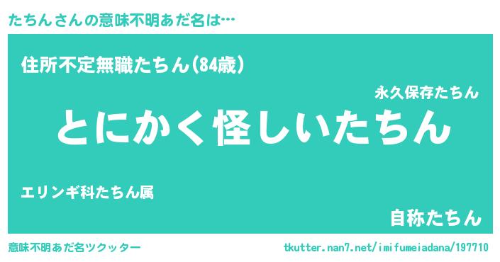 | 男性向けラノベタイトル風あだ名 | 『たちんの嫁は女の子じゃないと思った?』 |