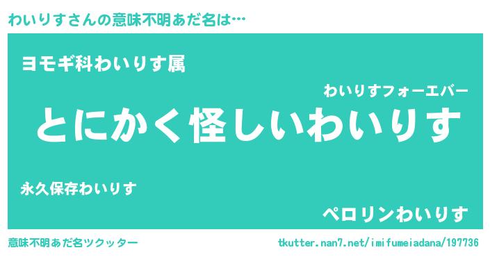 | 料理風あだ名 | 『わいりすの豆乳スープ』 |
