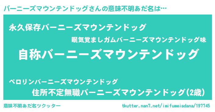 | 女子向けラノベタイトル風あだ名 | 『バーニーズマウンテンドッグアンティーク』 |