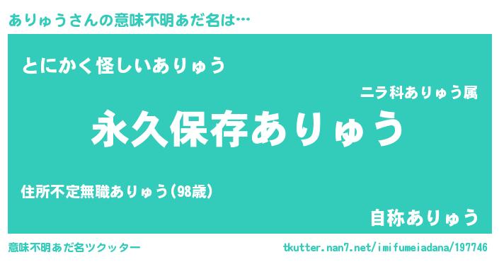 | 胡散臭い通販商品みたいなあだ名 | 『来世でも幸せになれる健康食品…その名も「ありゅう」』 |
