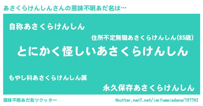| ポケモン風あだ名 | 『ヒアサクラケンシン』『アサセウス』 |