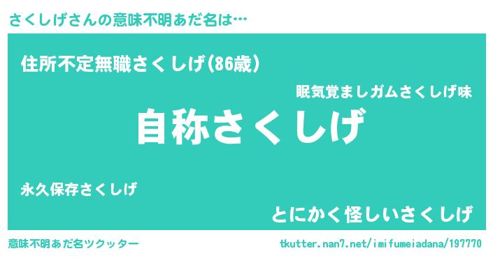 | ヘコむあだ名 | 『さくっ子』『さくしげ(小並感)』 |