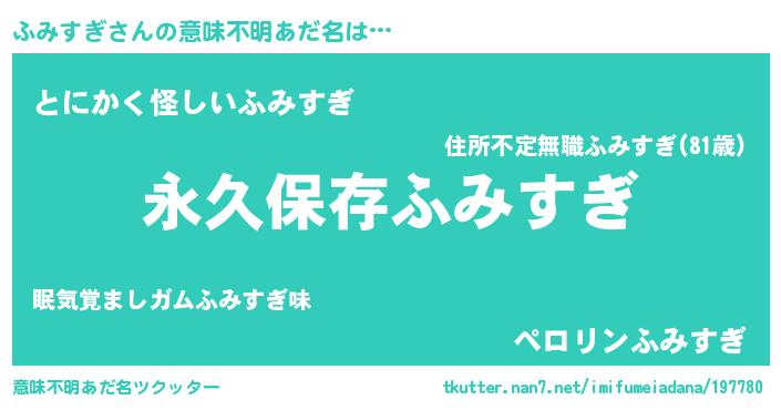 | ヘコむあだ名 | 『ふみすぎ(小並感)』『ふみを』 |