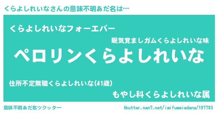 | 胡散臭い通販商品みたいなあだ名 | 『モテモテ間違いなし霊験あらたかなお札…その名も「くらよしれいな」』 |