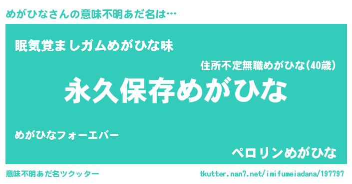 | ヘコむあだ名 | 『めがひな(爆)』『めがっふぃ~』 |