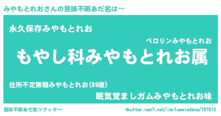 | 男性向けラノベタイトル風あだ名 | 『みやもとれおに滅ぼされるだけの簡単なお仕事です』 |