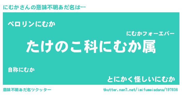 | 男性向けラノベタイトル風あだ名 | 『転生したらにむかだった件』 |