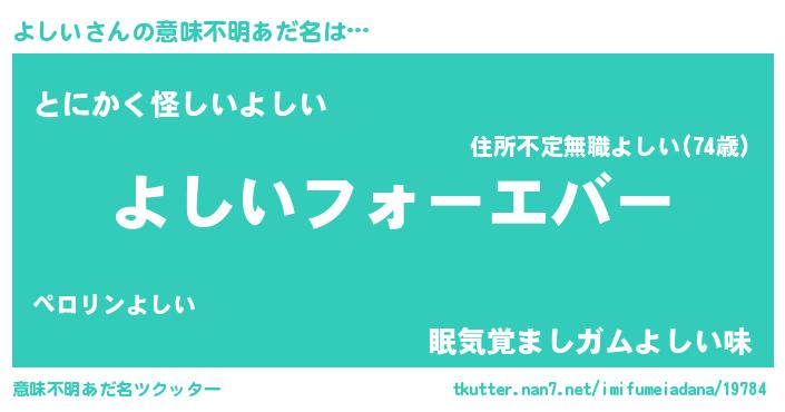 | 欧米人風あだ名 | 『アンジェラ・よしい』『ウサインよしい』 |