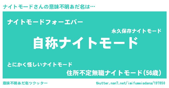| 男性向けラノベタイトル風あだ名 | 『Re:ナイトモードから始める異世界生活』 |