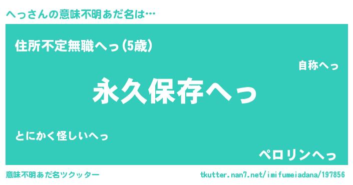 | ヘコむあだ名 | 『へっ(笑)』『へっにー』『へっっ子』 |