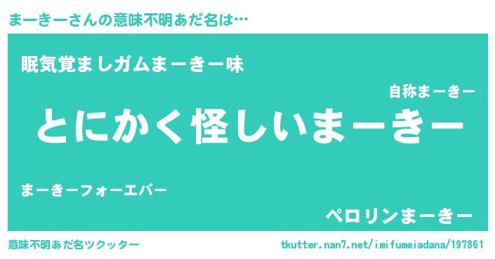 | 男性向けラノベタイトル風あだ名 | 『ダンジョンにまーきーを求めるのは間違っているだろうか』 |