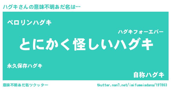 | 女子向けラノベタイトル風あだ名 | 『ハグキは平凡を望む』『ハグキの婚約者』 |