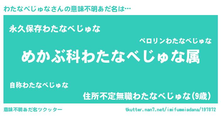 | ヘコむあだ名 | 『わたなべじゅな(小並感)』『わたっふぃ~』 |