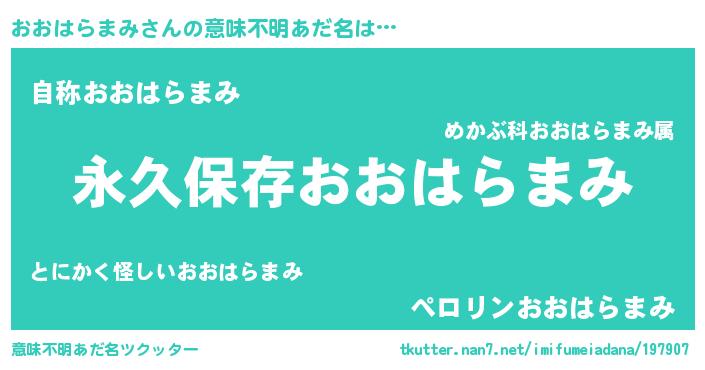| 欧米人風あだ名 | 『ダルビッシュおおはらまみ』 |