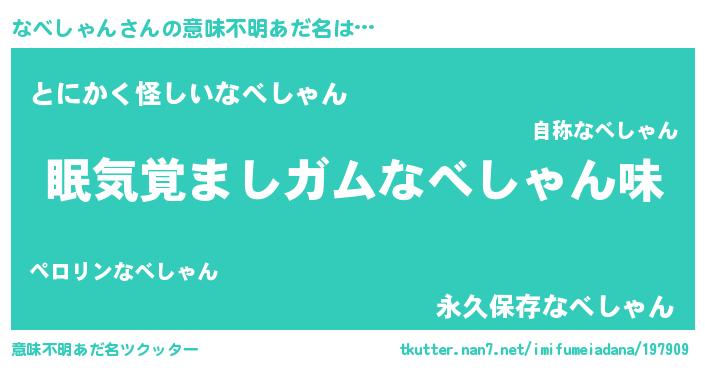 | 男性向けラノベタイトル風あだ名 | 『ノーゲーム・ノーナベシャン』 |