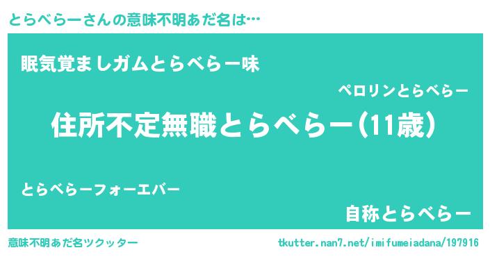 | ヒーロー風カッコイイあだ名 | 『仮面トラダー』『慈愛の使者とらべらー』 |