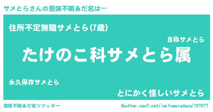 | 男性向けラノベタイトル風あだ名 | 『はたらくサメとらさま!』 |