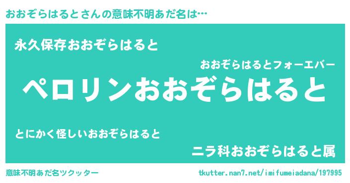 | 胡散臭い通販商品みたいなあだ名 | 『億万長者になれる霊験あらたかなお札…その名も「おおぞらはると」』 |