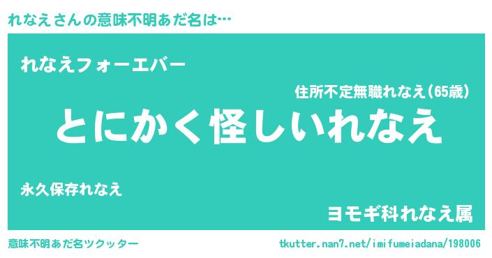 | 欧米人風あだ名 | 『ウサインれなえ』『れなえクリステル』 |