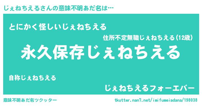| ヘコむあだ名 | 『じぇねちえる(苦笑)』『じぇお』 |
