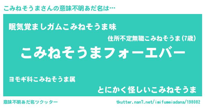 | 欧米人風あだ名 | 『こみねそうま・ステッグマイヤー』 |