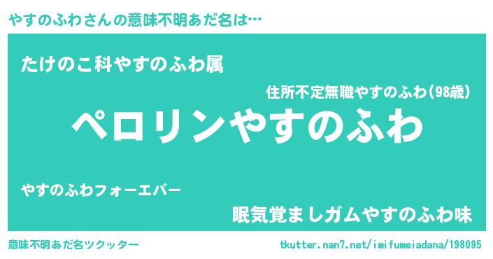 | 胡散臭い通販商品みたいなあだ名 | 『必ず成功する霊験あらたかなお札…その名も「やすのふわ」』 |
