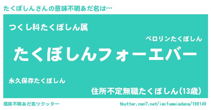 | ファンタジー風あだ名 | 『エターナルタクボシンー』『タクフェル』 |