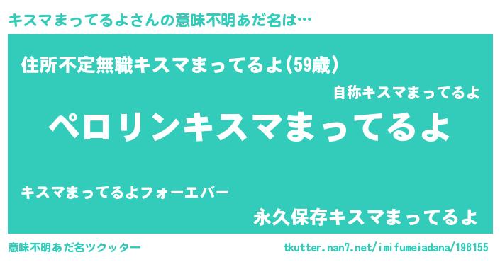 | ヒーロー風カッコイイあだ名 | 『スーパーキスママッテルヨ』 |