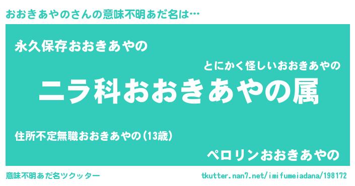 | 胡散臭い通販商品みたいなあだ名 | 『前代未聞の健康食品…その名も「おおきあやの」』 |