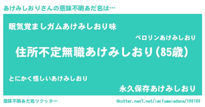 | 男性向けラノベタイトル風あだ名 | 『この素晴らしい世界にあけみしおりを!』 |
