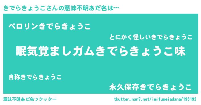 | ヘコむあだ名 | 『きでもー』『きでらきょうこ(遠い目)』 |
