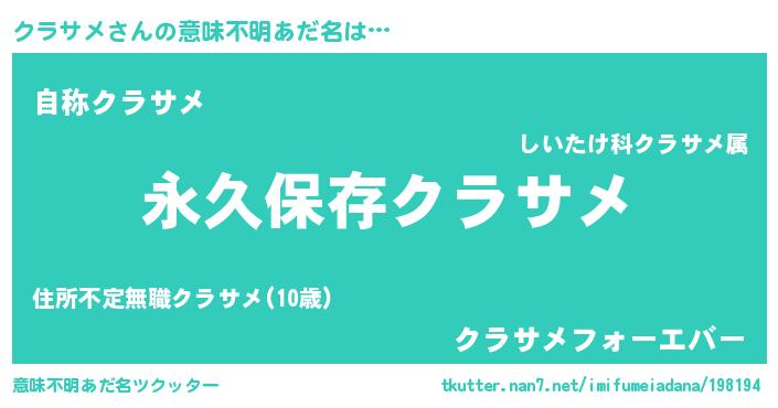 | ヒーロー風カッコイイあだ名 | 『ネオクラサメ』『超時空戦士クラサメ』 |