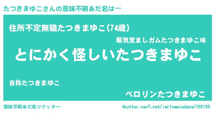 | 女子向けラノベタイトル風あだ名 | 『たつきまゆこの卵を拾いまして』 |