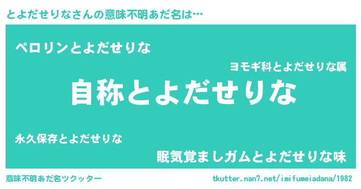 | ヘコむあだ名 | 『とよにー』『とよだせりな(笑)』 |