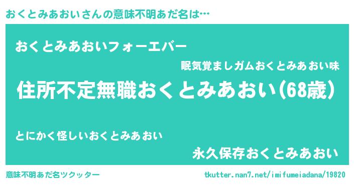 | 欧米人風あだ名 | 『ダレノガレおくとみあおい』 |