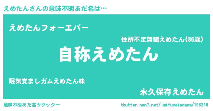 | ファンタジー風あだ名 | 『ゼエメトゥ』『エターナルエメタンー』 |