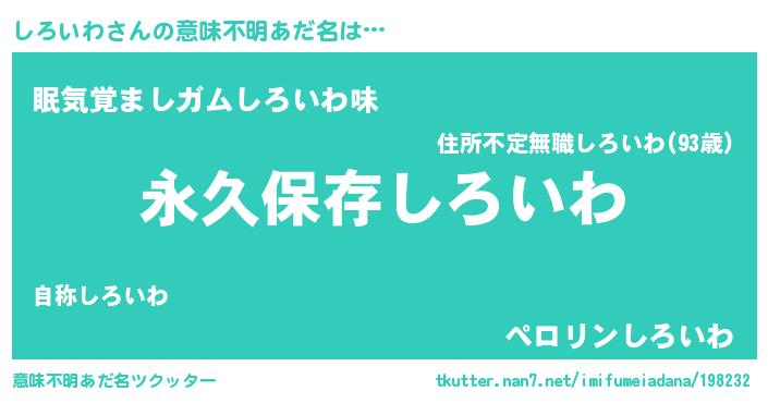 | ヘコむあだ名 | 『しろいわ(笑)』『しろにゅー』 |