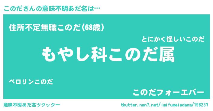 | 欧米人風あだ名 | 『このだ・ステッグマイヤー』 |