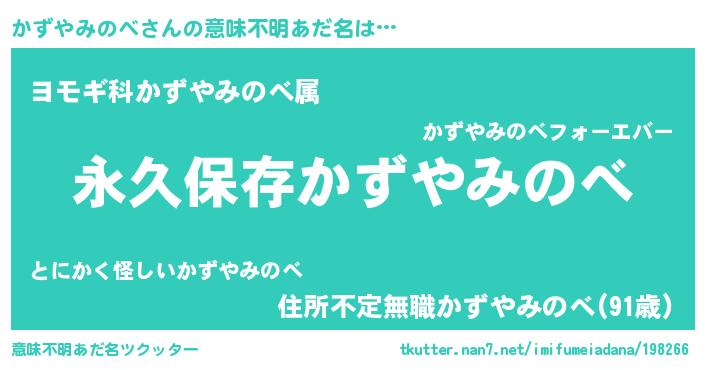 | 胡散臭い通販商品みたいなあだ名 | 『来世でも幸せになれる水素水…その名も「かずやみのべ」』 |