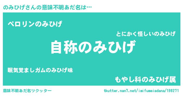| 料理風あだ名 | 『のみひげの炊き込みご飯』 |