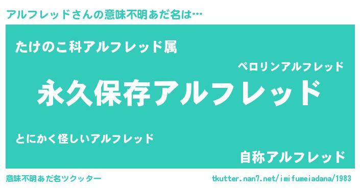 | ヘコむあだ名 | 『アルフレッド(爆)』『アルっふぃ~』 |