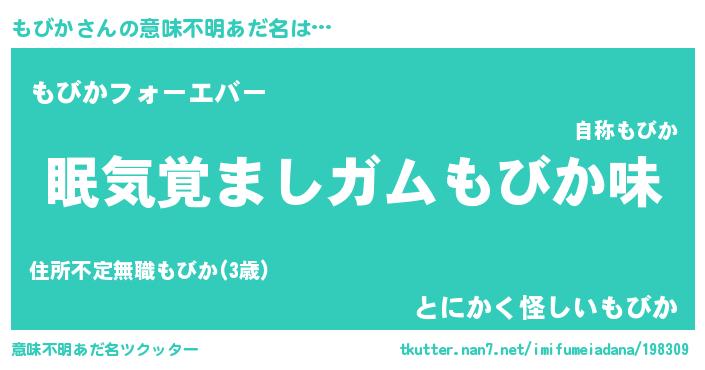 | 女子向けラノベタイトル風あだ名 | 『死神もびかの再婚』『もびか様がみてる』 |