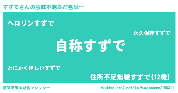 | 欧米人風あだ名 | 『ケンブリッジすずで』『マイケルすずで』 |