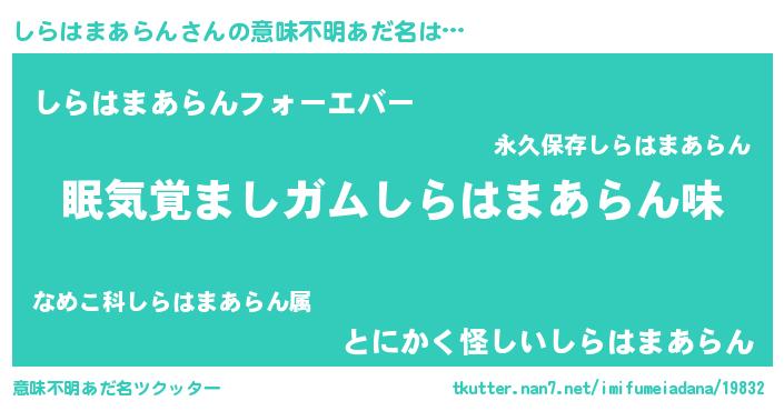 | 女子向けラノベタイトル風あだ名 | 『しらはまあらん恋絵巻』 |