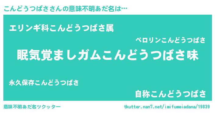 | 女子向けラノベタイトル風あだ名 | 『こんどうつばさ恋絵巻』 |