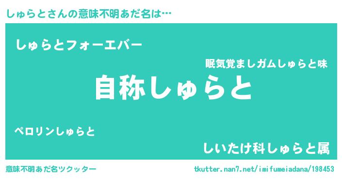 | 肩書あだ名 | 『しゅらと総統』『しゅらと大統領』 |