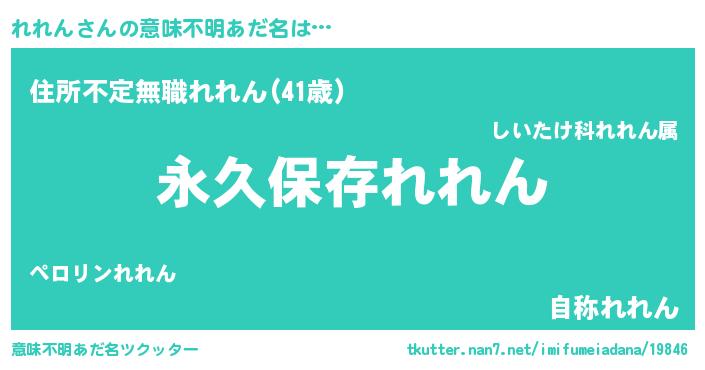 | 男性向けラノベタイトル風あだ名 | 『れれんという概念が存在しない退屈な世界 』 |