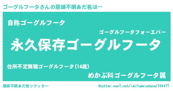 | 伝説のあだ名 | 『古より伝わる吟遊詩人ゴーグルフータ』 |