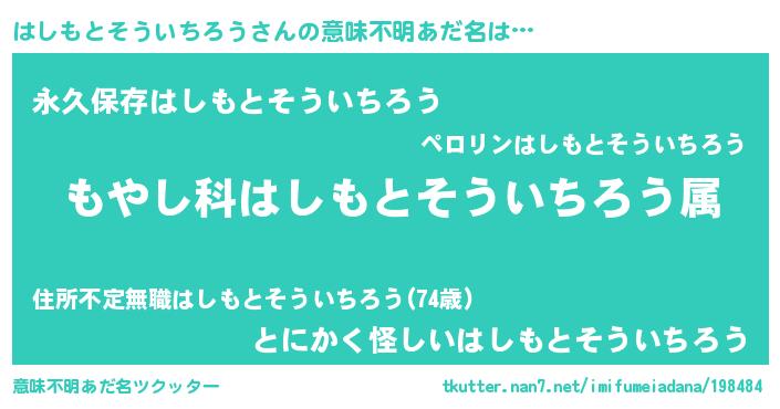 | 胡散臭い通販商品みたいなあだ名 | 『来世でも幸せになれる健康食品…その名も「はしもとそういちろう」』 |